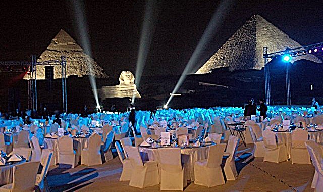 Ou pode ser noutro cenário, talvez o Templo de Luxor, à beira do mítico Rio Nilo. Em vez de faraós, sacerdotes e outros dignatários do antigo Egito, desta vez quem desfruta do jantar exclusivo em solo outrora sagrado são executivos, revendedores e clientes de uma empresa, participantes de uma viagem de incentivo.